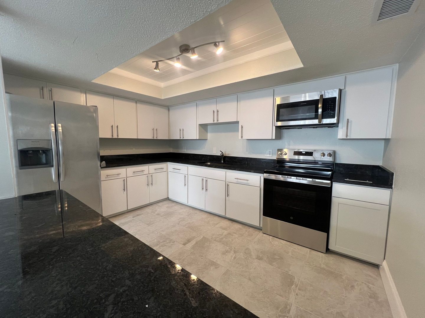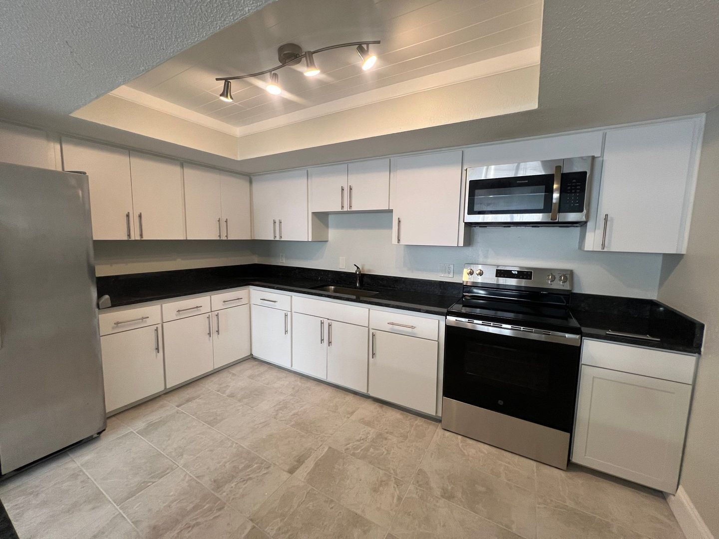 Newly Remodeled, first floor unit with central heat and air conditioning, new stainless steel appliances, new flooring, new paint throughout.