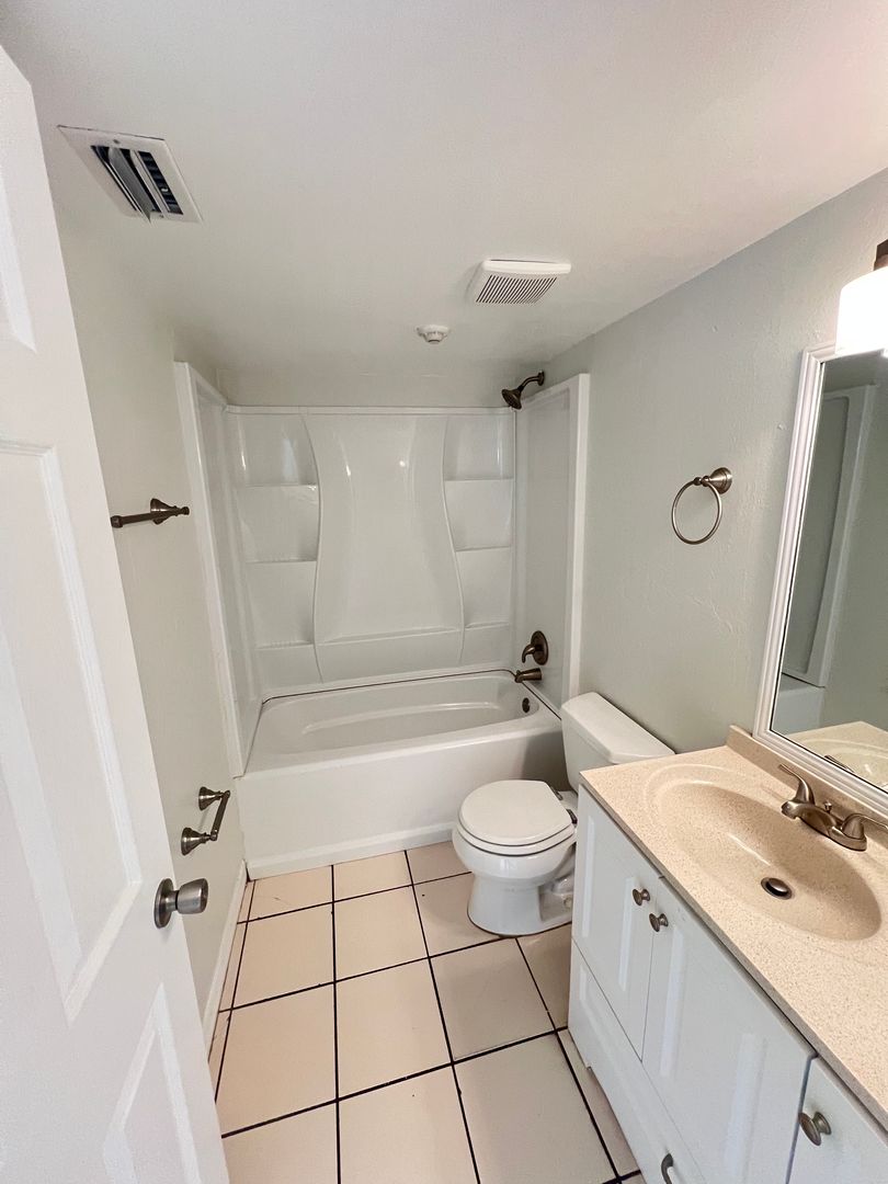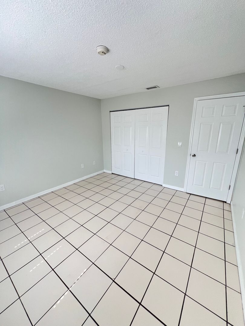 The unit is freshly painted with new blinds and ceiling fan.